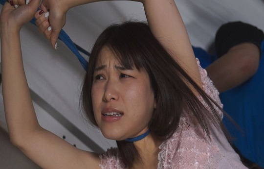 鬼畜な男たちに囲まれ、何度も繰り返される首絞めプレイ。逃げ出そうと激しく抵抗するが、徐々に意識が薄れ力が入らなくなる。窒息寸前の限界ギリギリまで攻められ、徐々に体力を奪われる水原あお。全身を強張らせ、咳き込み、よだれを垂らす。